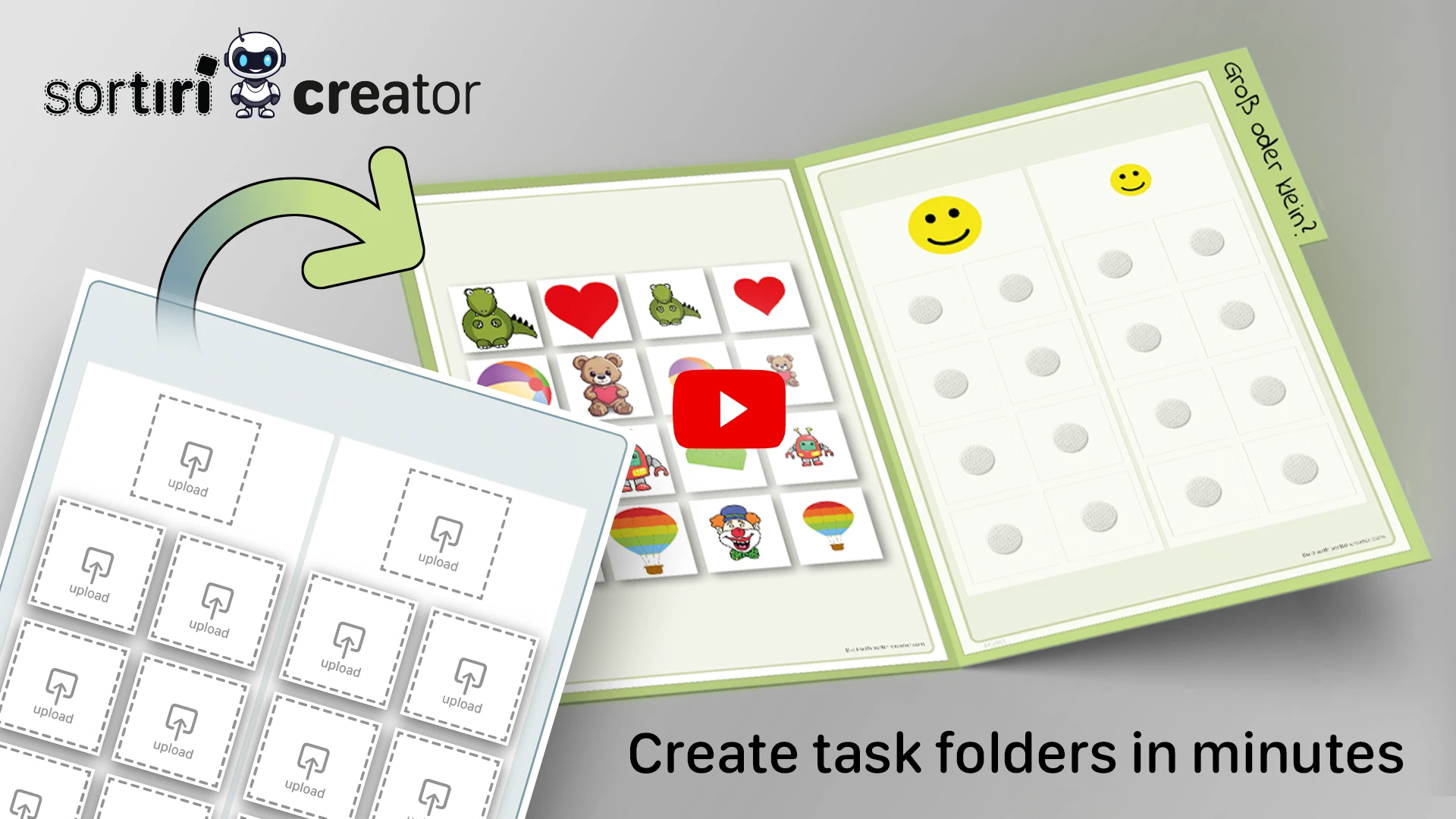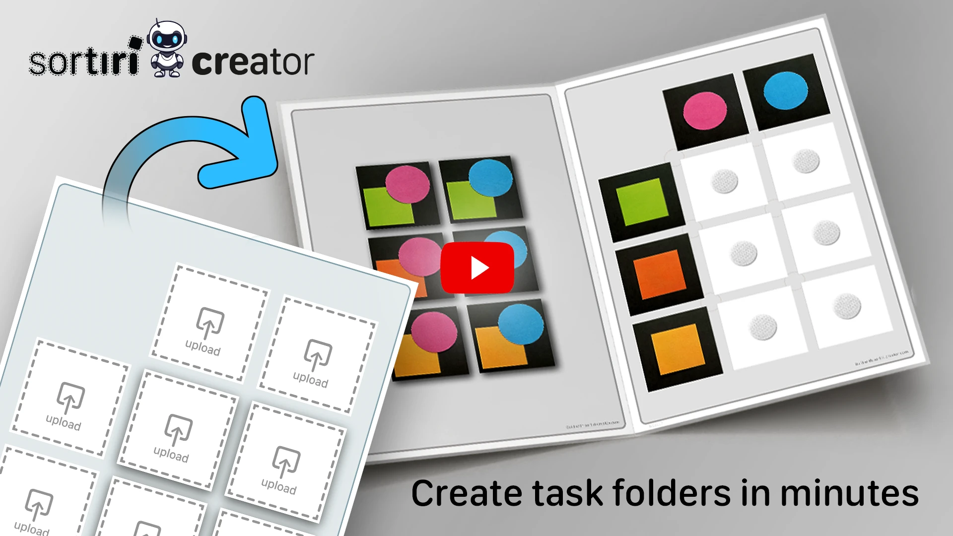 sortiri creator – das ist das Online-Tool für individuelle Klettmappen-Vorlagen. Unter sortiri-creator.com kann man unter über 50 Vorlagen aus den Bereichen „Sortieren, Kombinieren und Zuordnen“ auswählen. Mit eigenen Bildern oder kostenlosen Motiven einer angeschlossenen Bilddatenbank kann man einfach und schnell eigene Klettmappen-Vorlagen nach TEACCH erstellen.